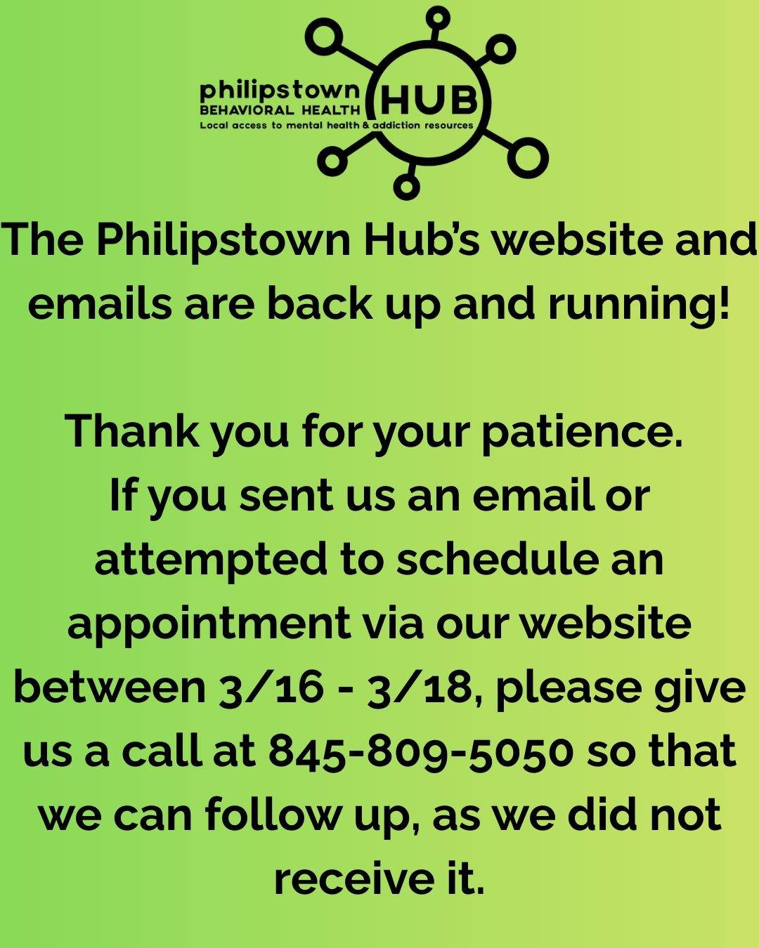 Welcome to the Philipstown Behavioral Health Hub. We provide free referrals and care coordination to help people secure vital mental health and addiction recovery resources and to connect with providers. We also offer support groups, programs, and partnerships to serve our community with compassion and confidentiality.